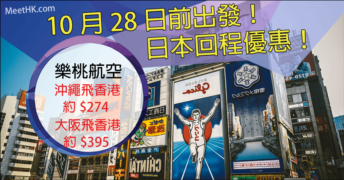 抵呀!明晚11點開賣!10月28日前出發!沖繩飛香港單程只需3,490円,大阪3,690円 – 樂桃航空 (優惠至5月28日)