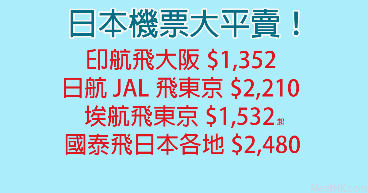 日本機票大平賣!印航飛大阪$1,352,日航JAL飛東京$2,210,埃航飛東京$1,532起,國泰飛日本各地$2,480 – Wefly.com.hk (優惠至5月28日)