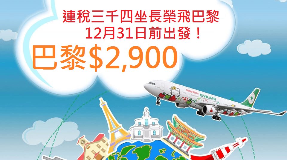 勁抵!連稅三千四坐Hello Kitty機飛巴黎!12月31日前出發!香港往返巴黎只需$2,900 – 長榮航空