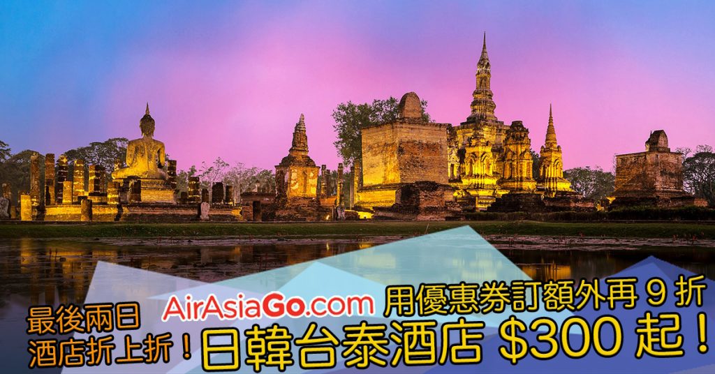 最後兩日,酒店折上折,用優惠券訂額外再9折!日韓台泰酒店$300起!泰國套票$1,299起 – AirAsiaGo (優惠至5月31日)