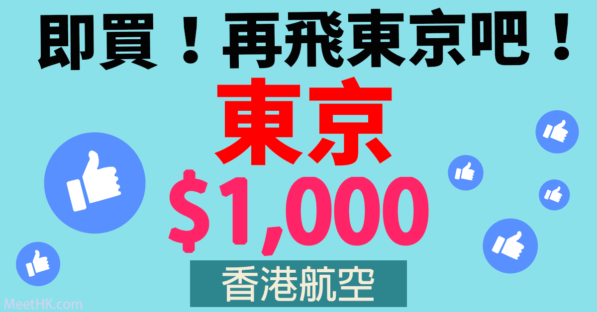 即買!再飛東京吧!早機出發!明年3月1日前出發!包20kg行李!香港往返東京只需$1,000 – 香港航空