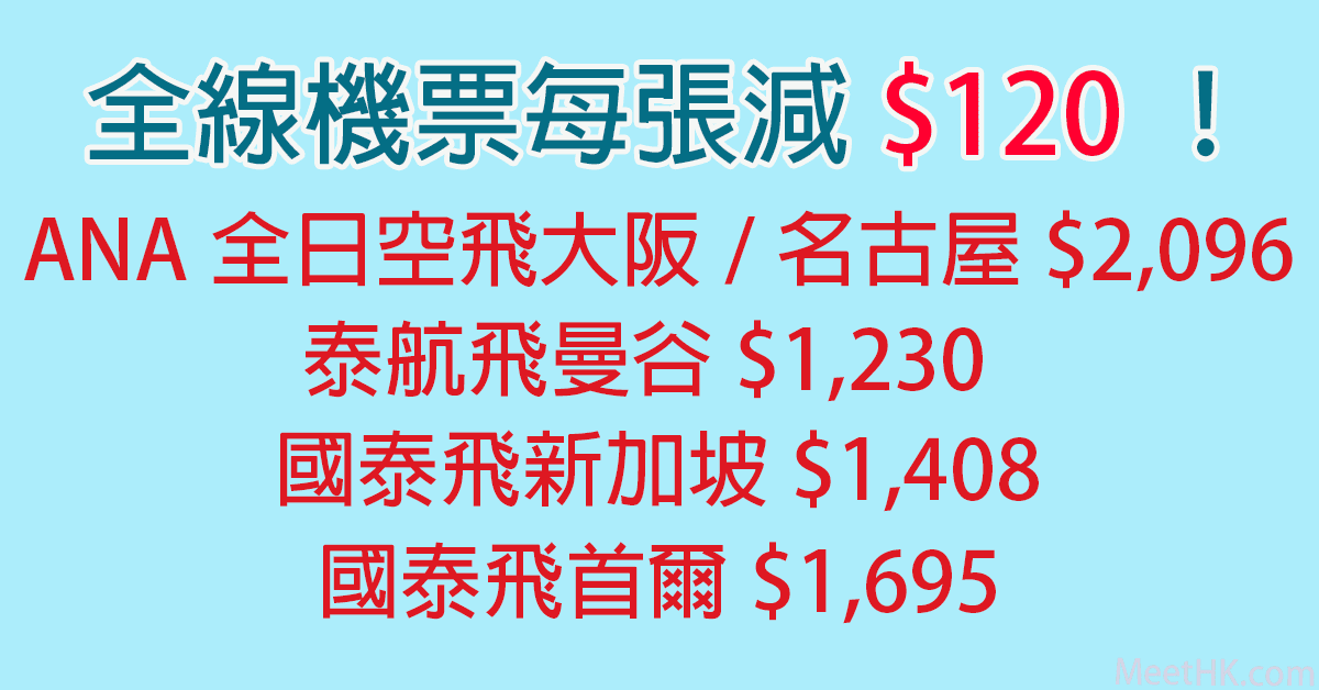 GoGoGo!今日推出左全線機票每張減$120優惠