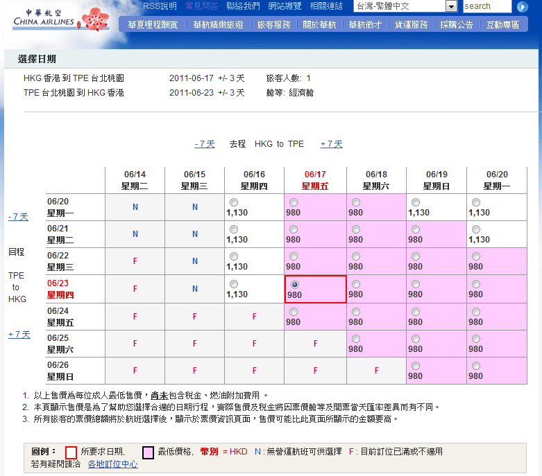 原來中華航空官網都有呢個優惠,而且價格更低至980起