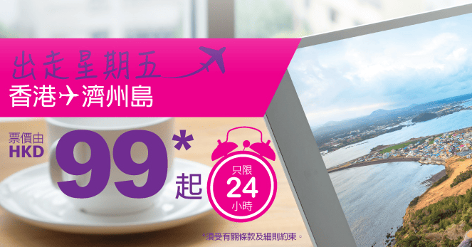 香港飛濟州單程只需$99,來回連稅$618,優惠只限今日