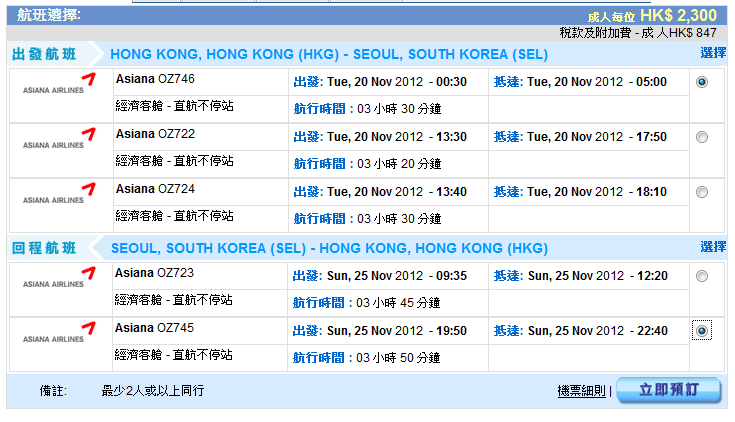 價錢同大韓航空既優惠差不多,不個韓亞要二人同行先有優惠,大韓就一人成行