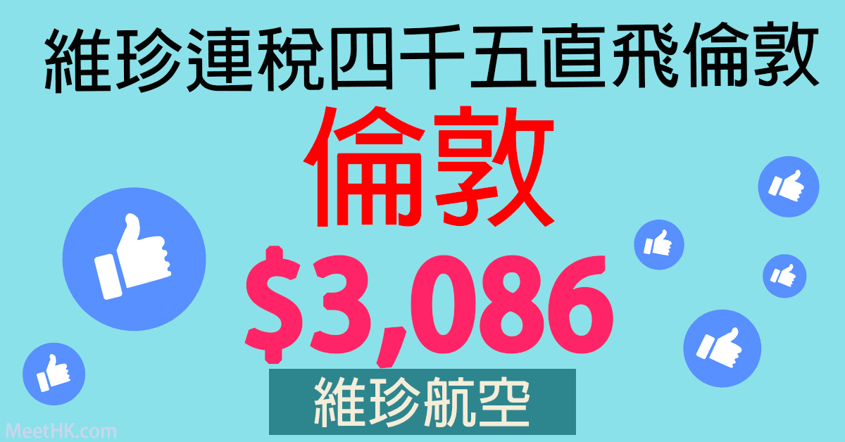 嘩!維珍狂減!連稅四千五直飛倫敦!12月14日前出發!香港直航往返倫敦只需$3,086起 – 維珍航空 (優惠至6月13日)