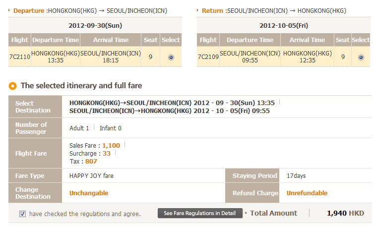 價錢方面,香港往返韓國首爾只需$1,100,連埋稅都只係$1,940,二千蚊去首爾抵到爛