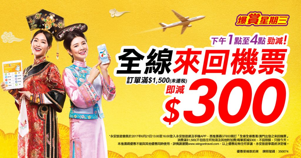 嘩!破天荒狂減$300逼你飛!全線機票滿$1,500激減$300!國泰/港龍飛台灣$685起,ANA全日空飛大阪/名古屋$1,850,國泰飛日本$1,950、曼谷$1,318,韓亞飛首爾$1,350 – 永安旅遊 (優惠至6月21日4pm)