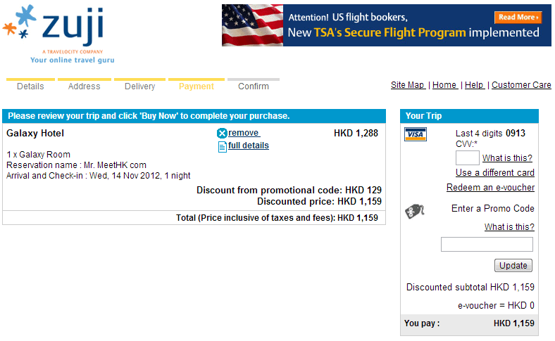 有關折扣優惠代碼使用方法,請參考 http://www.zuji.com.hk/site/travel_deals/hotels/promo_code_ZH.html