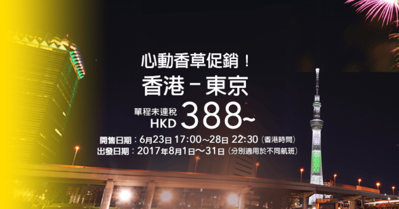 香港飛東京成田單程只需$388,來回連稅$1,140,暑假旺季黎講價錢唔錯