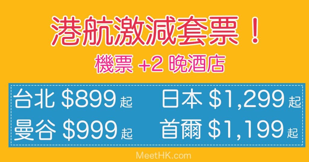 台北3日2夜套票$899起、曼谷$999起、首爾$1,199起!已包兩晚酒店!可以stay behind,最多停留7天