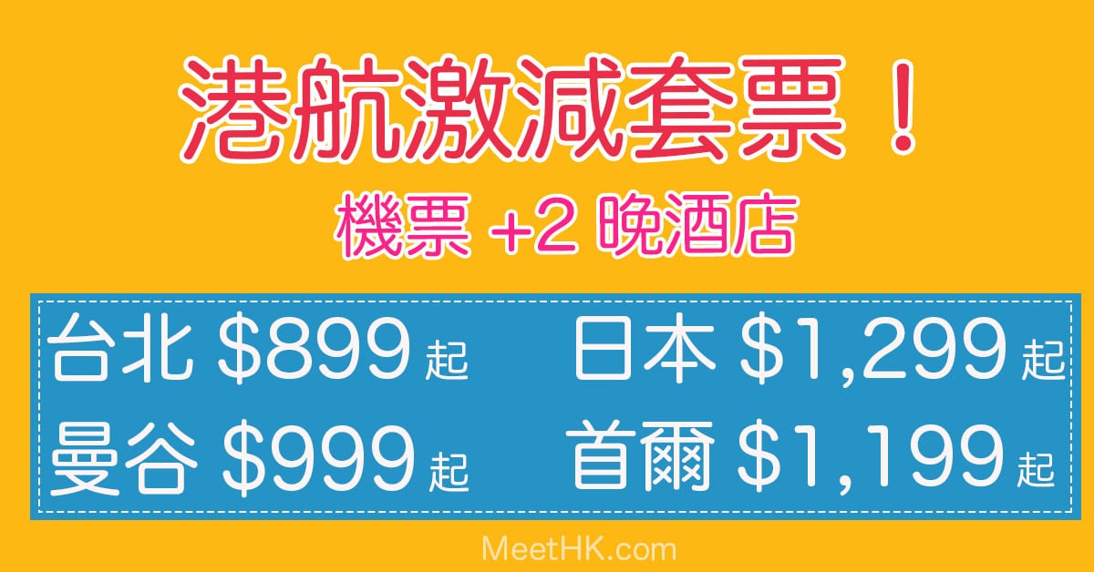 台北3日2夜套票$899起、曼谷$999起、首爾$1,199起!已包兩晚酒店!可以stay behind,最多停留7天