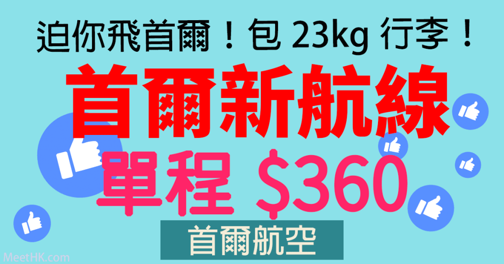 勁抵!新航線!開航優惠!包23kg行李!凌晨機去晚機返!香港飛首爾單程只需$360 – 首爾航空 (優惠至6月29日)