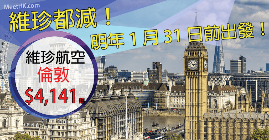 維珍都減!明年1月31日前出發!香港直航往返倫敦只需$4,141起 – 維珍航空 (優惠至7月10日)