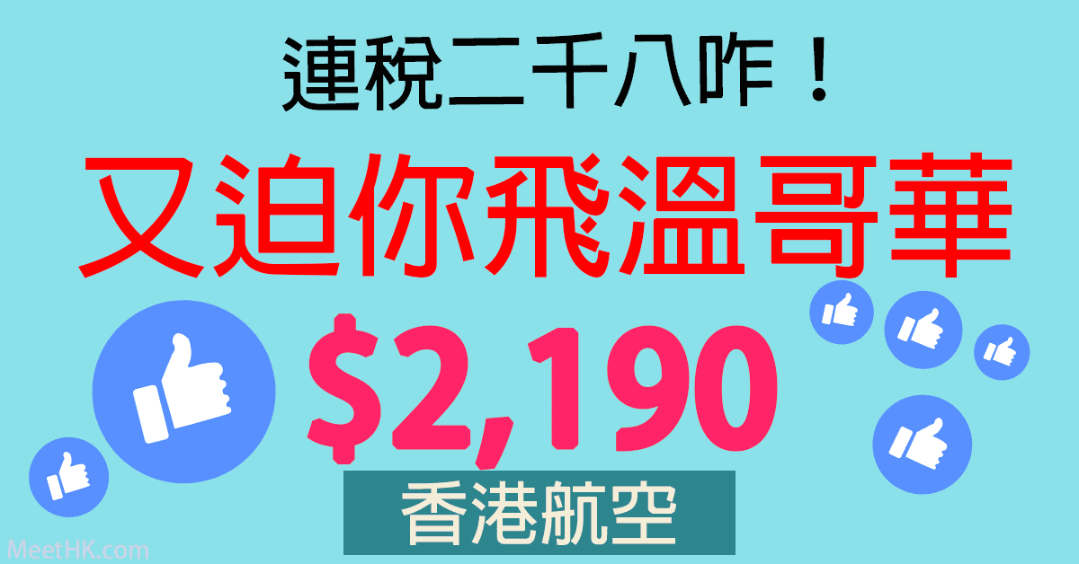 嘩!連稅二千八咋!又迫你飛溫哥華!明年2月28日前出發!2件23kg行李!香港往返溫哥華只需$2,190起 – 香港航空 (優惠至7月7日)