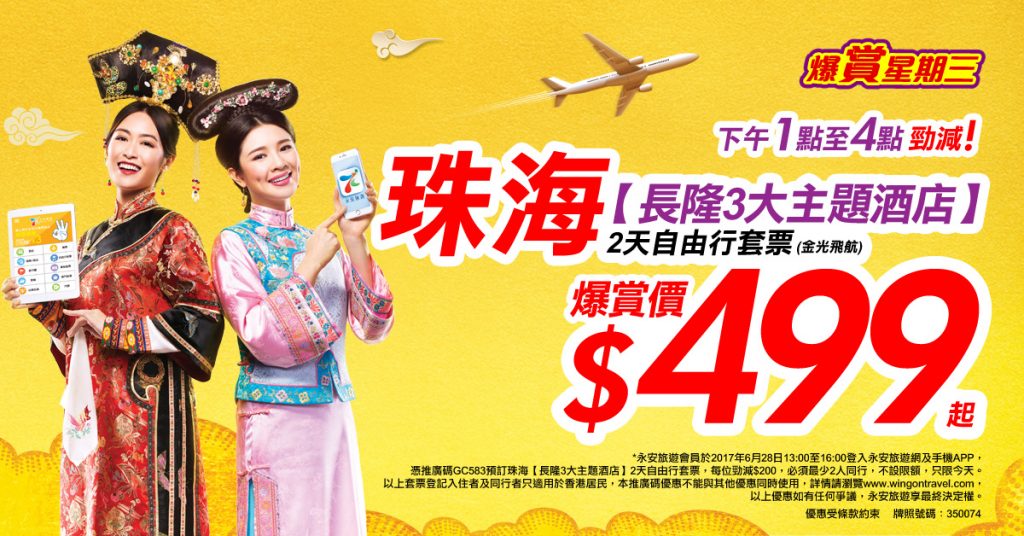 永安旅遊會係明天(6月28日)下午1點推出限時3小時珠海【長隆3大主題酒店】2天自由行套票每人減$200優惠,不限名額