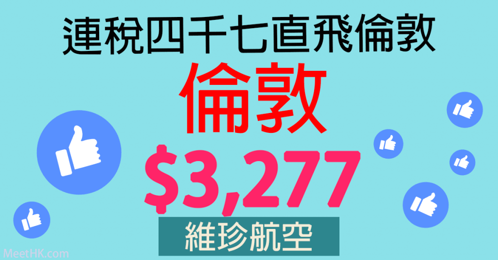 維珍直飛倫敦來回只需$3,277,連稅$4,761,直航黎講價錢好吸引