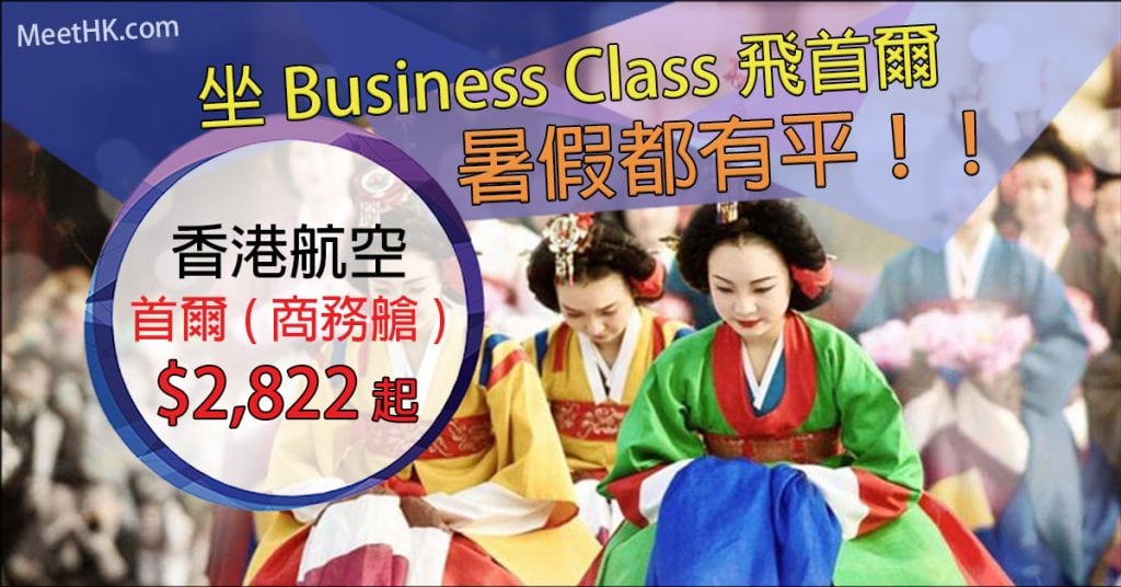 抵呀!暑假旺季坐Business Class飛首爾!30kg行李!香港往返首爾商務艙二人同行每人只需$2,822起 – 香港航空 (優惠至10月31日)