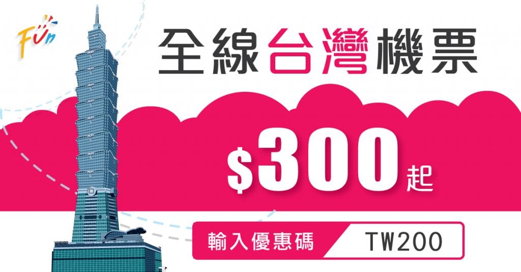Funfun.travel推出左全線台灣機票每張減$200優惠碼:【TW200】
