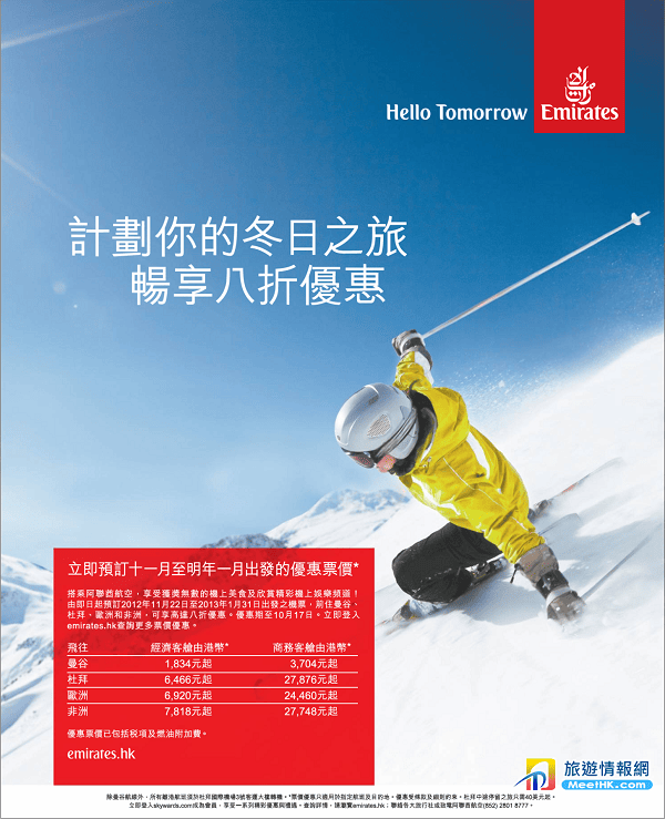 阿聯酋航空冬季優惠!涵蓋曼谷、杜拜、非洲及多個歐洲城市 推介:曼谷$1,834(包稅) – 阿聯酋航空 Emirates (優惠至10月17日)