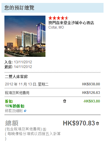 另外 澳門喜來登金沙城中心酒店 都可以訂到呢個優惠