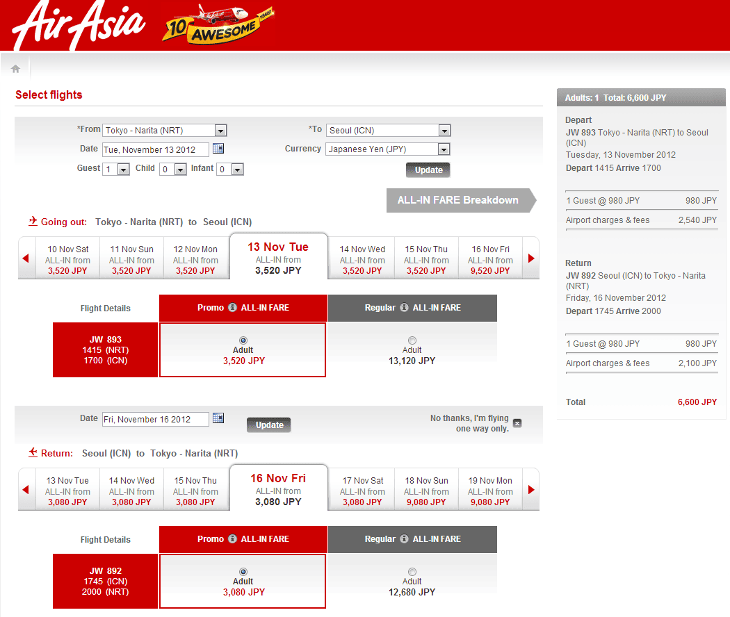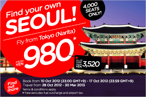 開航優惠!東京至首爾單程只需980円 – 日本亞航 AirAsia Japan (優惠至10月17日)