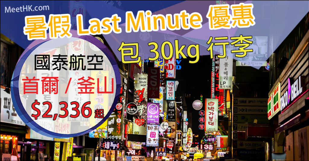 抵呀!國泰暑假飛韓國Last Minute優惠!香港往返首爾、釜山只需$2,336起 – 國泰航空 (優惠至7月31日)