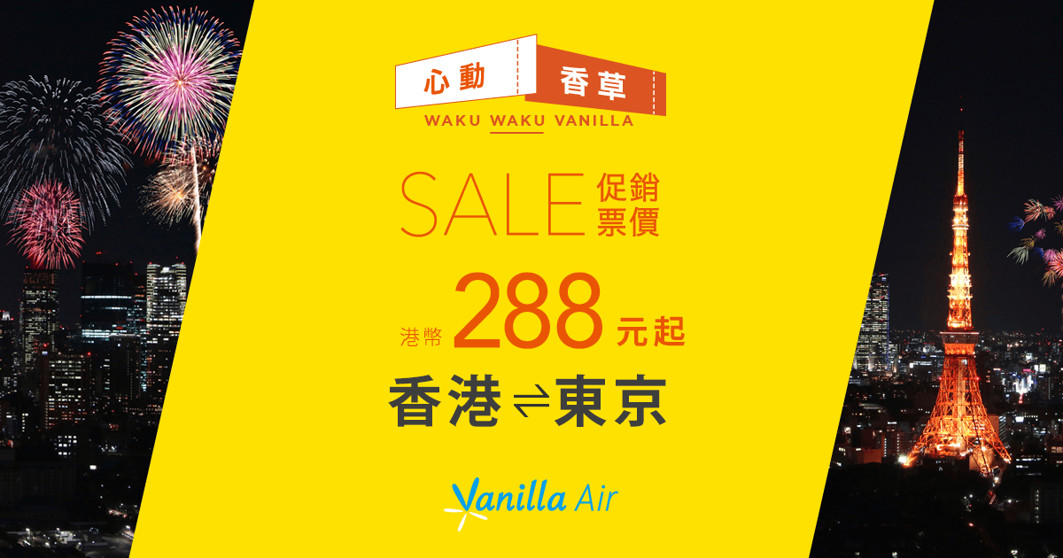 嘩!連稅$940暑假飛東京!10月28日前出發!香港飛東京單程只需$288 – 香草航空 Vanilla Air (優惠至7月20日)