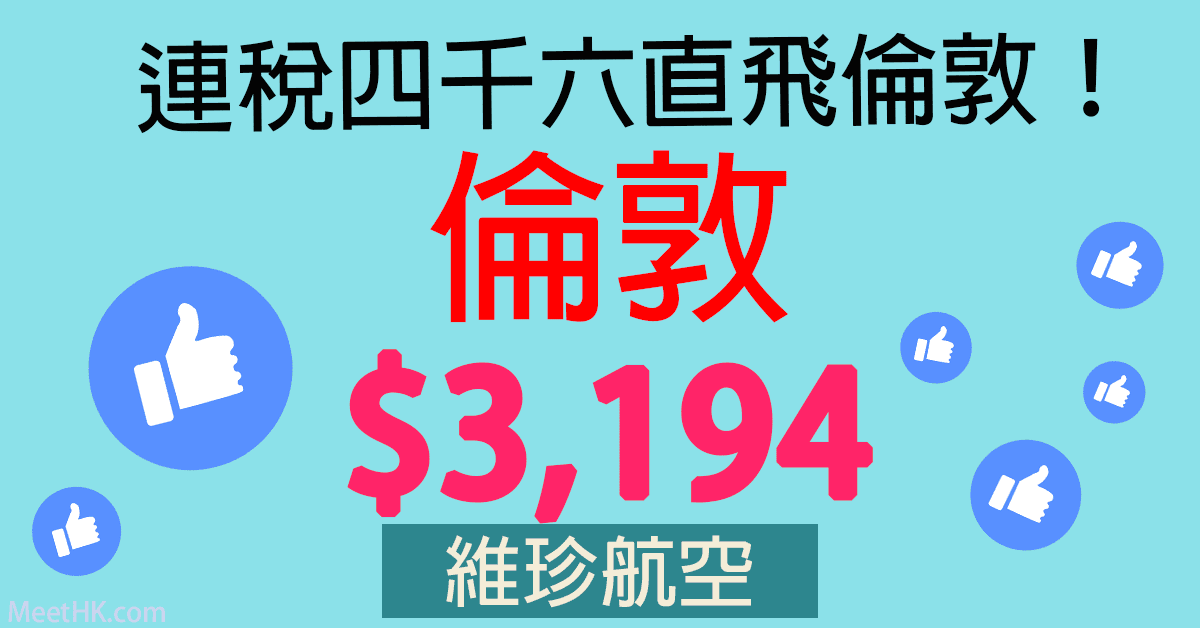 香港直航往返倫敦只需$3,194,連稅$4,690,好平下
