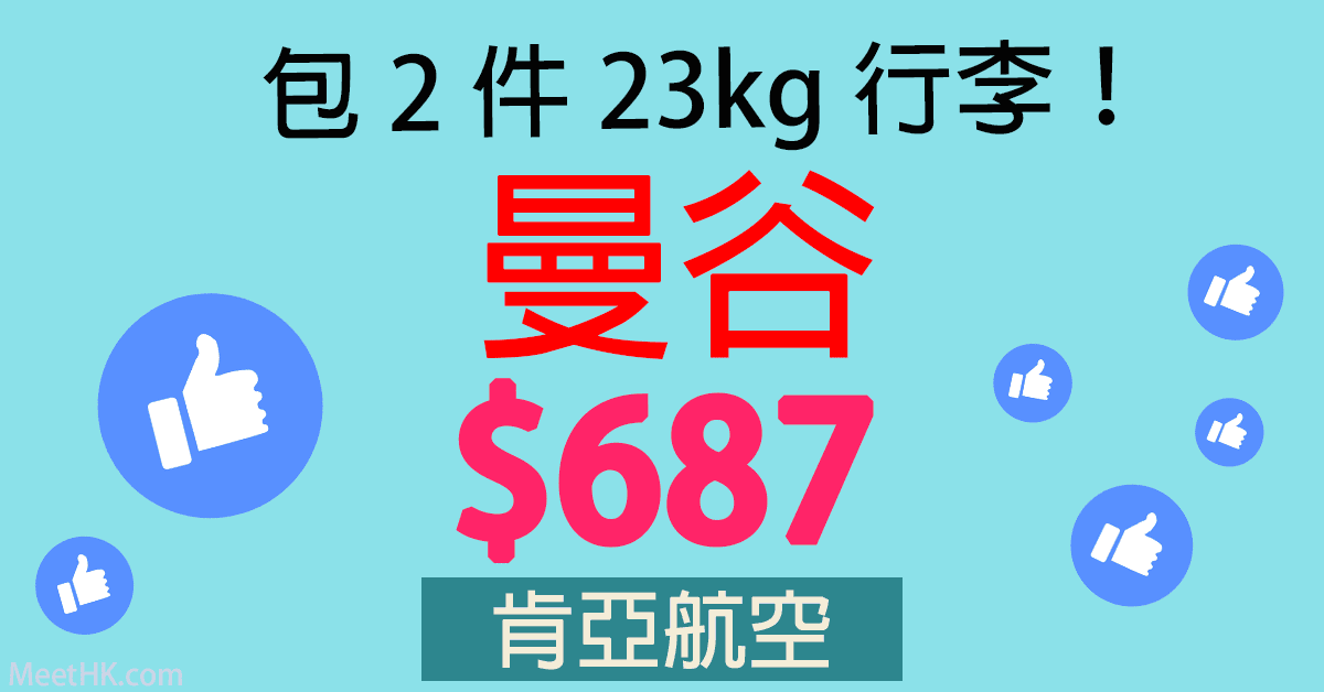 抵呀!包2件23kg行李!明年6月9日前出發!香港往返曼谷只需$687起 – 肯亞航空
