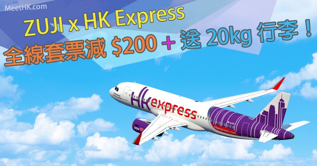 抵呀!而家經ZUJI 訂全線HK Express套票即減$200再送來回20kg行李!限時3日咋!