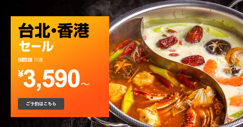 東京香港單程只需4,590円、連稅6,130円(約$426)