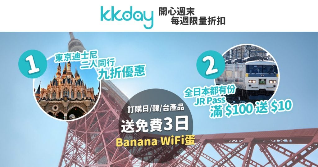 開心週末!東京迪士尼二人同行9折!日本JR Pass滿$100送$10!訂日韓台行程送3日Wi-Fi蛋! – KKday (優惠至8月27日)