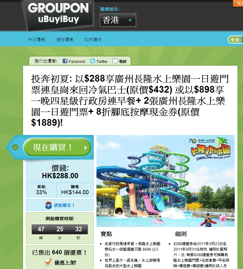 GROUPON (uBuyiBuy) 有一個廣州長隆水上樂園既優惠