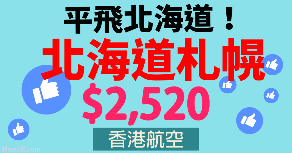 抵呀!平飛北海道!明年6月6日前出發!包20kg行李!香港往返札幌只需$2,520 – 香港航空