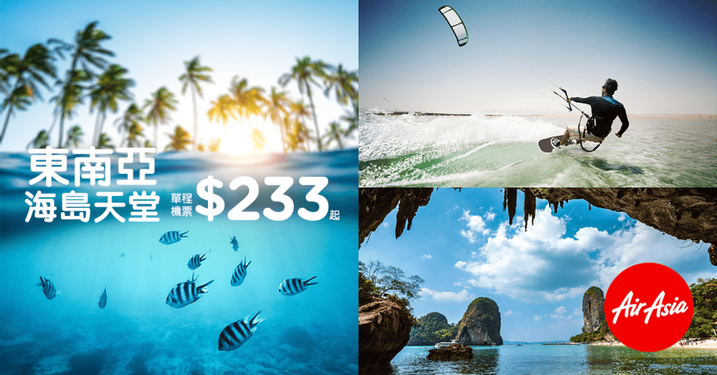 玩轉東南亞海島天堂!香港飛沙巴來回連稅$909起、吉隆坡$931起、布吉/曼谷/清邁$1,029起 – AirAsia (優惠至7月30日)