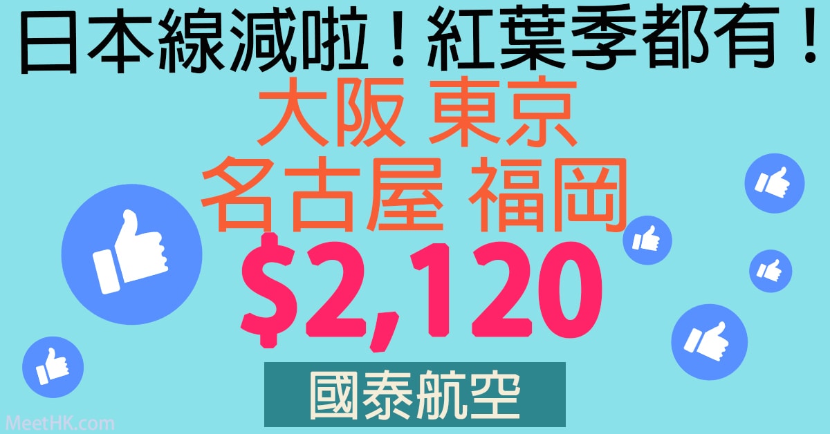 抵呀!國泰日本線減啦!明年2月11日前出發!東京、大阪、名古屋、福岡只需$2,120起 – 國泰航空 (優惠至8月31日)