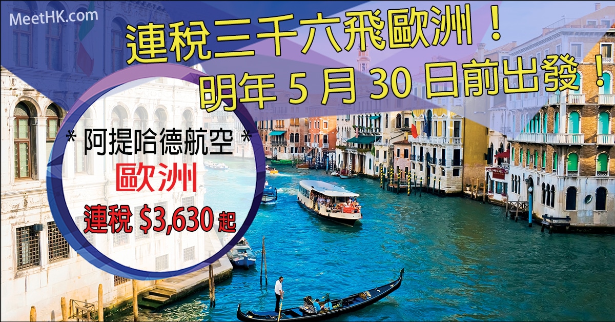 減到下年5月喇!連稅三千六飛歐洲!香港往返歐洲各地連稅只需$3,630起 – 阿提哈德航空 (優惠至7月31日)