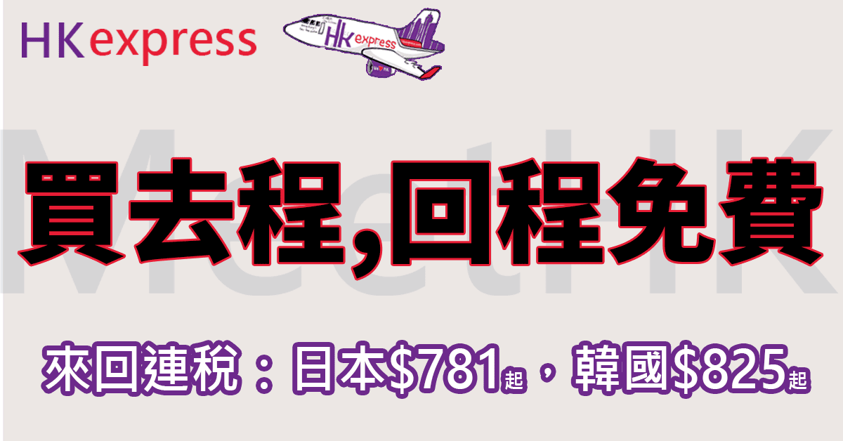 買去程,回程$0!今晚12點開賣!香港飛台灣/東南亞來回$248起,日本各地$328起,首爾/釜山/濟州$368起 – HK Express (優惠至8月3日)