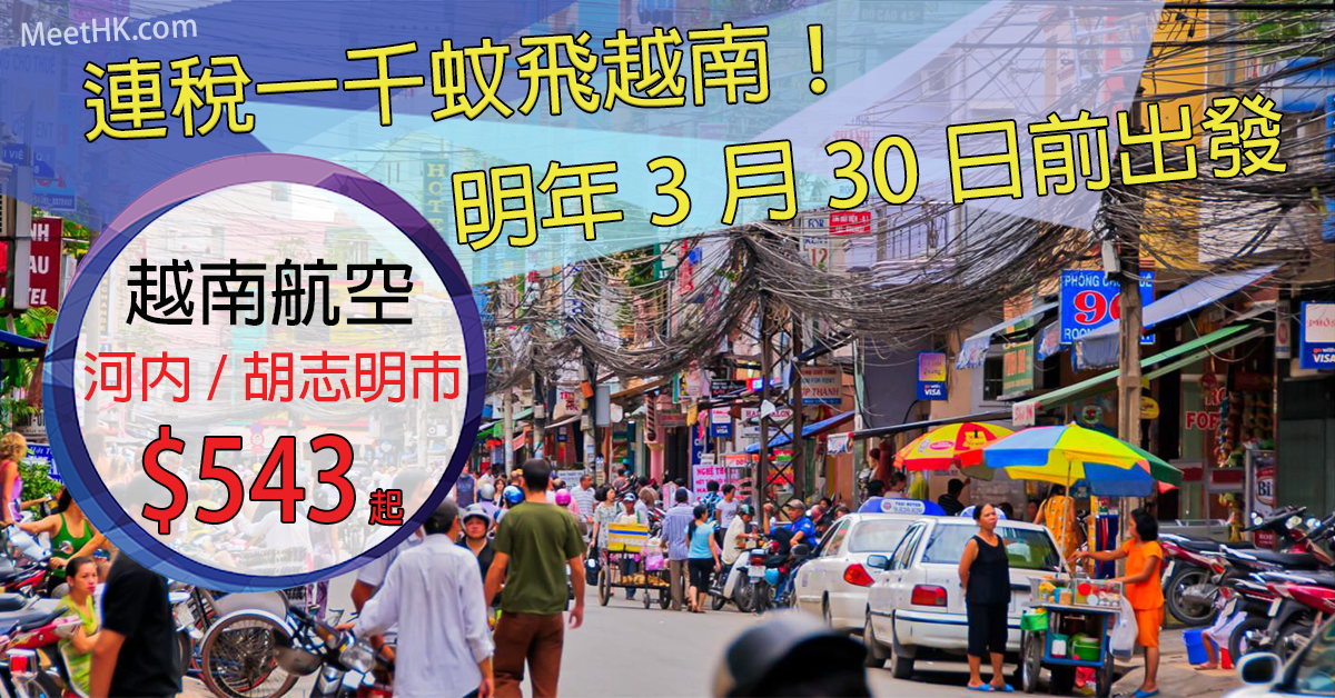 抵呀!連稅一千蚊飛越南!明年3月30日前出發!香港往返河內、胡志明市只需$543起 – 越南航空