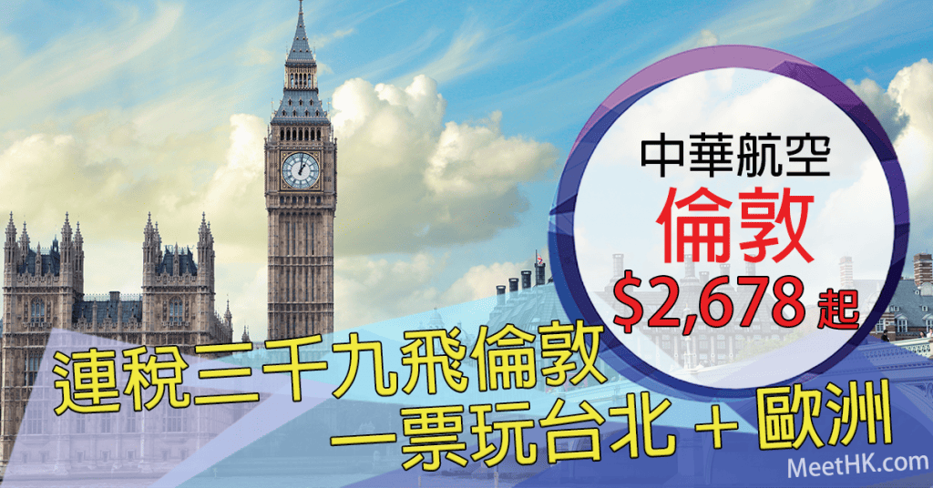 又平又正!一票玩台北 + 歐洲!連稅三千九飛倫敦!香港往返倫敦只需$2,678起 – 中華航空