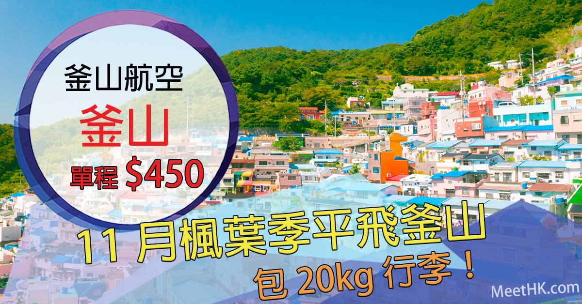 抵呀!明早10點開賣!11月份出發!包20kg行李!香港/澳門飛釜山單程只需$450 – 釜山航空 (優惠至8月7日)