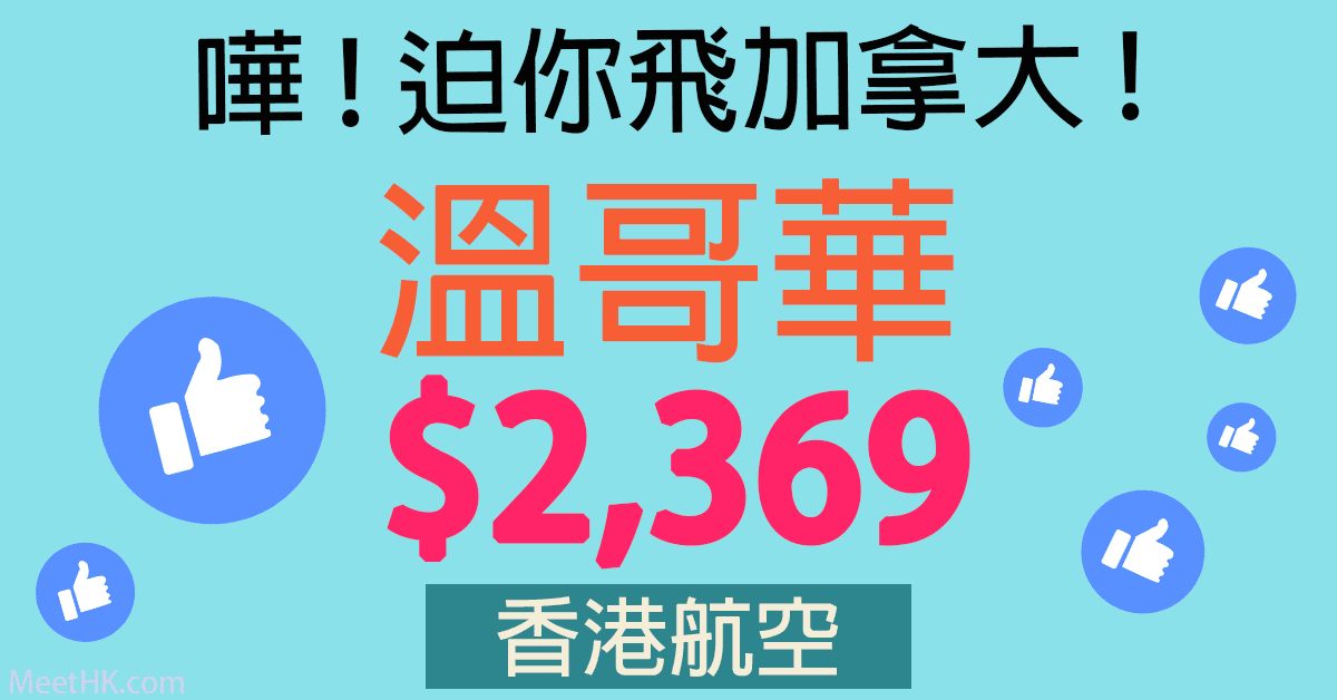嘩!連稅三千直飛溫哥華!明年3月15日前出發!2件23kg行李!香港往返溫哥華只需$2,369起 – 香港航空