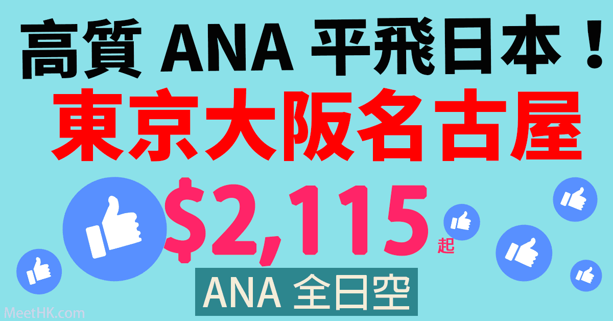 抵呀!高質ANA平飛日本!賣到下年3月啦!兩件各23kg行李!ANA全日空飛東京、大阪、名古屋只需$2,115起 (優惠至9月30日)