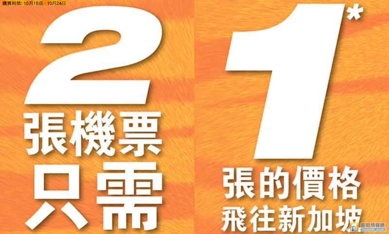 今晚凌晨(10月18日0:00)輪到另一廉航虎航接力,虎航推出限時買一送一大優惠!