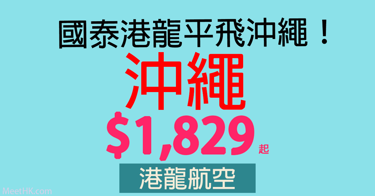 國泰港龍平飛沖繩!11月30日前出發!包30kg行李!香港往返沖繩只需$1,829起 – 港龍航空 (優惠至8月31日)