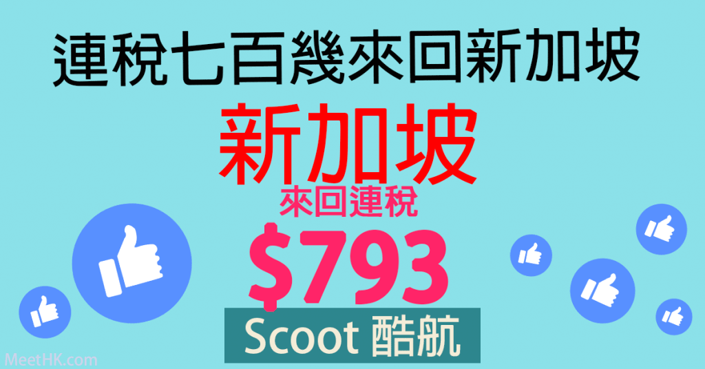 抵呀!連稅七百幾來回新加坡!香港飛新加坡來回連稅只需$793 – Scoot 酷航 (優惠至8月20日)