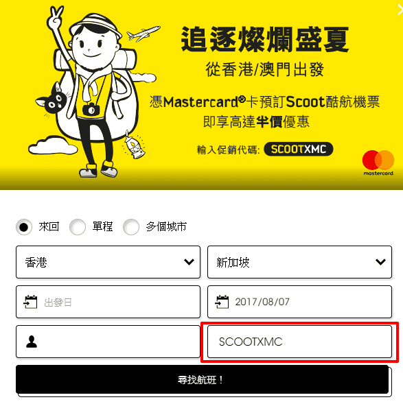 http://www.flyscoot.com/zhtw/hk-mastercard (促銷代碼: SCOOTXMC ,需以mastercard付款)