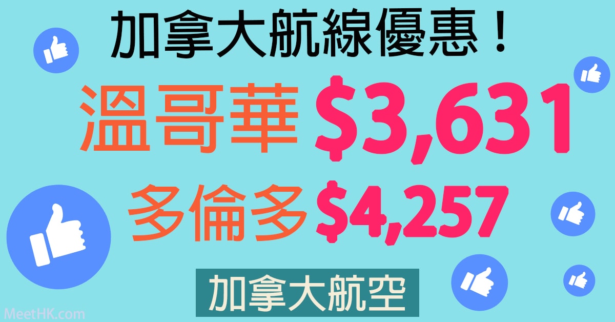 嘩!加航直飛加拿大有得減!香港往返溫哥華只需$3,631起,多倫多$4,257起 – 加拿大航空 (優惠至8月31日)