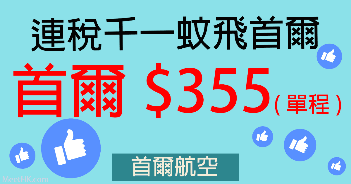 香港飛首爾單程只需約$355(50,500KRW),來回連稅約$1,163(165,700KRW)